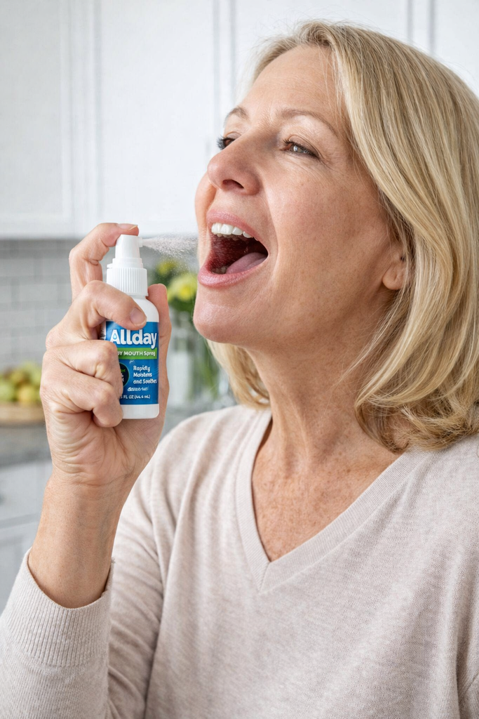 Allday dry mouth spray works differently than any other moisturizing mouth spray.